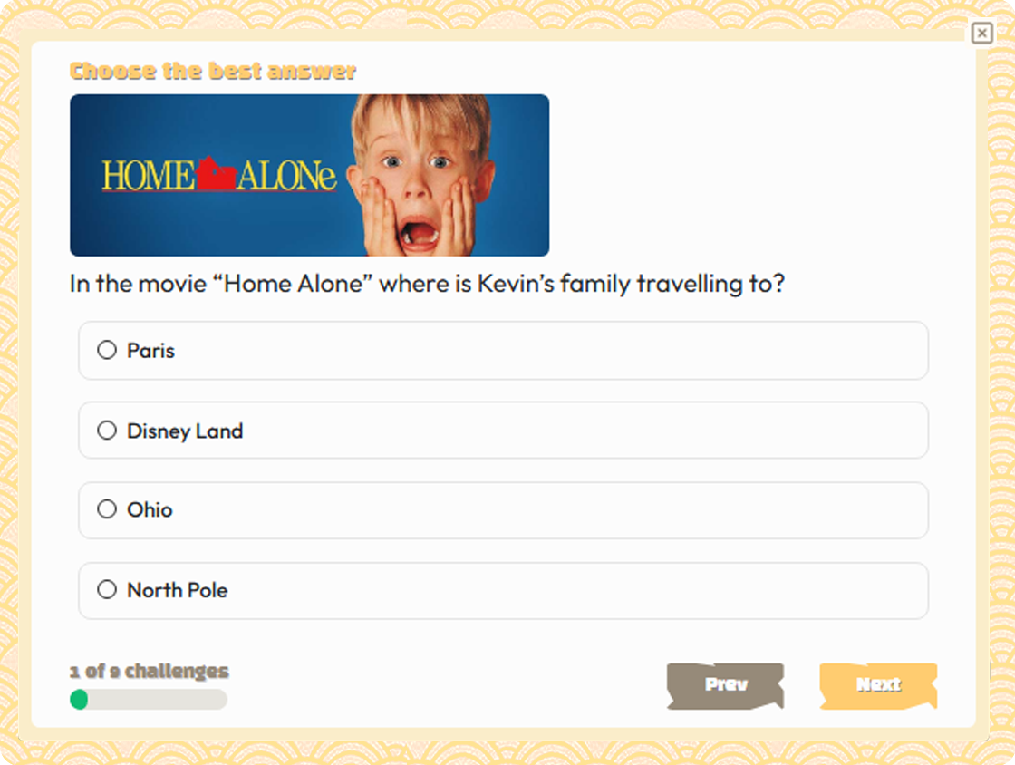 An online quiz platform like Kung Fu Quiz makes creating quizzes easy and enjoyable. Simply add your questions, include images or audio, and share the quiz link with participants. Try mixing simple and slightly challenging questions, using cheerful and festive visuals, so everyone can play comfortably and have a good time.